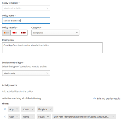 In Cloud App Security the policy is targeted to specific users who are using Dropbox Business