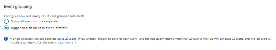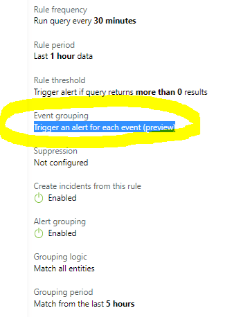 One thing to mention is that the way GuardDuty findings/alerts are handled Sentinel caused an extra headache for me. The problem was that there is little room in Sentinel to configure how alerts are created from events compared to incidents. It meant that if I went forward with the typical setting, at the end of the day all guardDuty findings were underneath one (1) incident. By configuring the following settings incidents were created in a more logical manner (especially with sample findings).