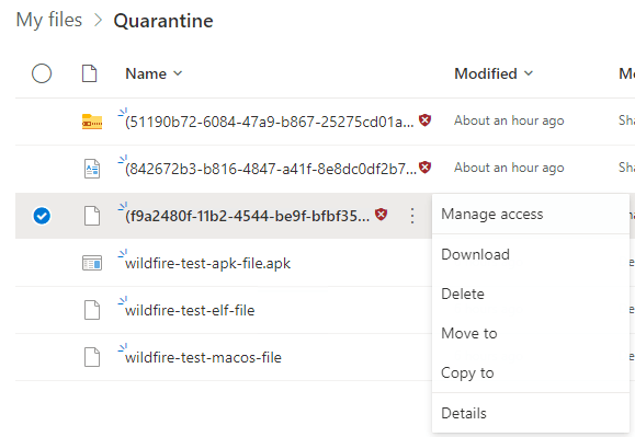 - The quarantine folder site access management is the customer’s responsibility