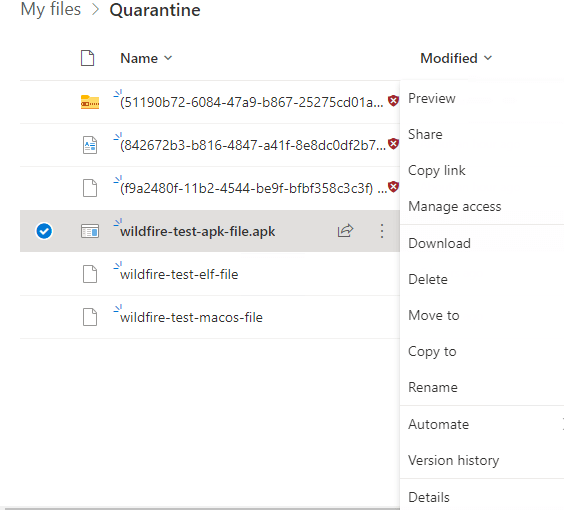 - Files labeled by Defender for Cloud Apps can’t be quarantined.