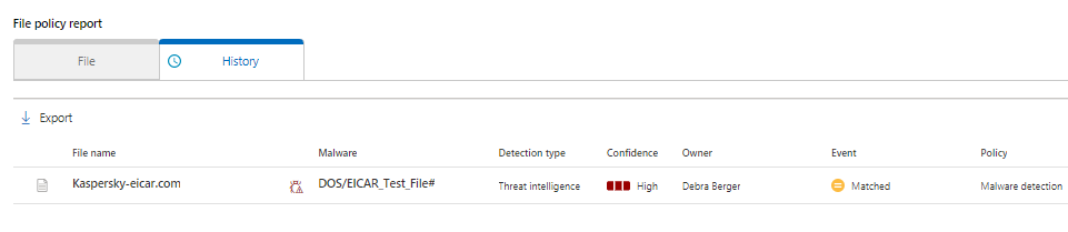 - File filtering: matched policy equals malware detection policy