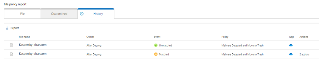In the demo environment, all detections were made with test eicar files from different sources and naturally in the production environment malware files were true positive findings. Different malware types were not tested and the focus of this research was purely on Defender for Cloud Apps policies and file governance actions.