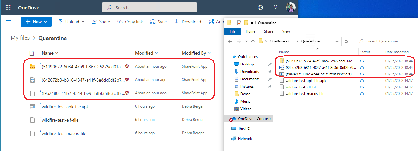 - The file is removed from the ODfB folder to a folder named ‘Quarantine’