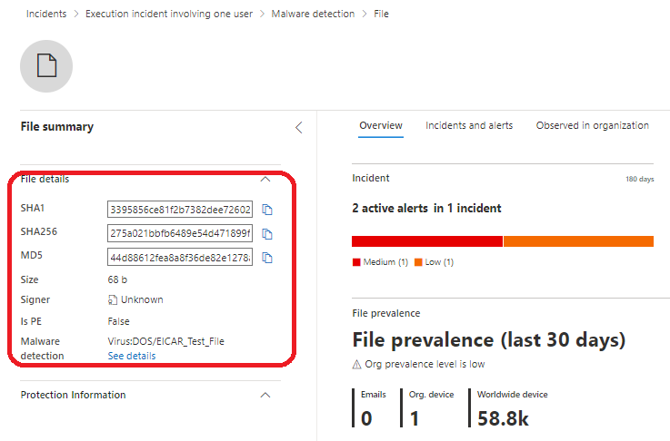 - File Hashes is not included in the MDA alert details