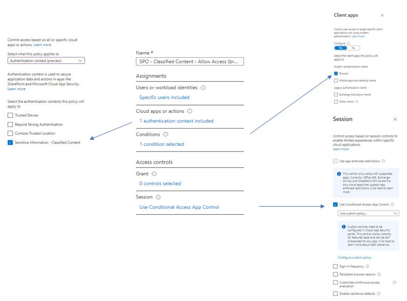 - Authentication context is part of the Conditional Access policy when is a requirement to use ‘Conditional Access App Control’ which in short means – forward session to MDA session proxy