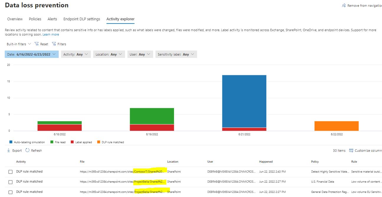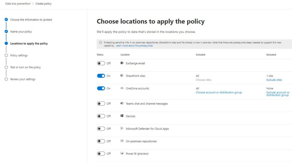 - Lastly, DLP policies detect if files are saved to alternate locations in M365 workloads