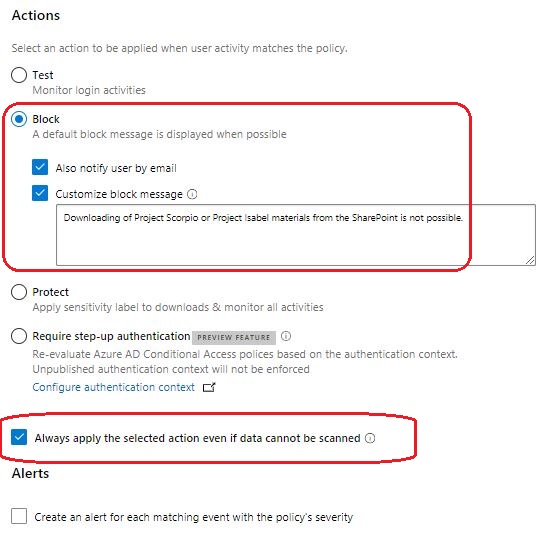 - In MDA we have a custom policy that prevents downloading of the documents if the sensitivity label is detected from the files