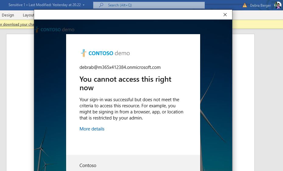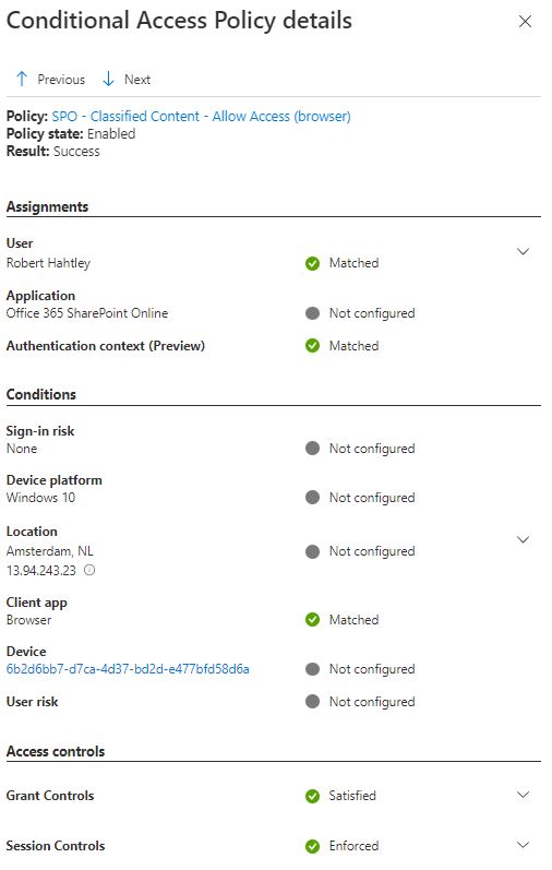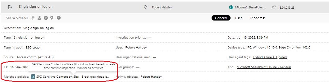 If you are familiar with the MDA session policies the user experience is similar to any session policy. When a user is accessing SPO that contains sensitive material and is labeled: