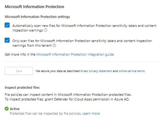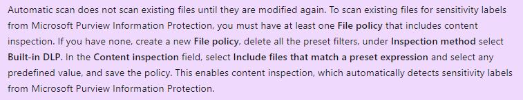 - This enables content inspection, which automatically detects sensitivity labels from Microsoft Purview Information Protection.
