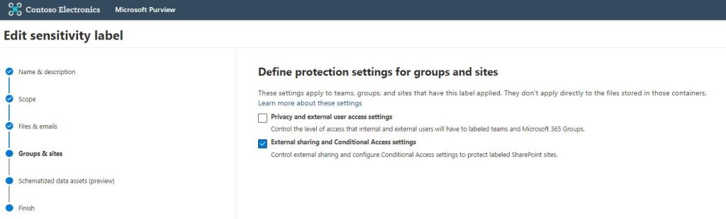 If you haven’t enabled the capability to use labels in Teams, M365 Groups, or SPO you need to configure the feature based on this article. There are pre-requisites that need to be fulfilled that you are able to use labels on the M365 Groups & SPO sites. Besides that, on the label ‘Use Azure AD Conditional Access protect labeled SharePoint sites’ needs to be configured.