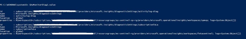 After removing audit log export to Log Analytics, the other two, storage account & event hub integrations still exist. These are stored underneath different ARM resource provider as you can see below.