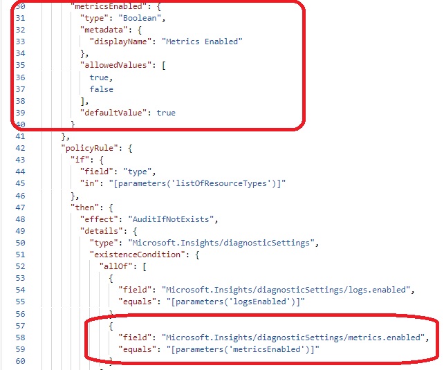 If an organization is using IaC to maintain the Azure platform then configuration could be made through IaC and configure audit policy instead to verify that configurations are in place.