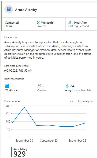 - The existing Log Analytics workspace has been used when the Sentinel instance has been deployed and the legacy log profile has been used to send logs to the Log Analytics workspace