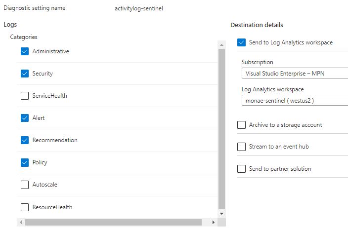 - Azure Activity Logs export configuration has been made on time where there weren’t any other options available
