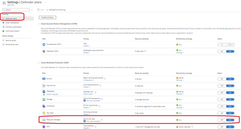 Defender for Cloud enhanced plan – Defender for Resource Manager