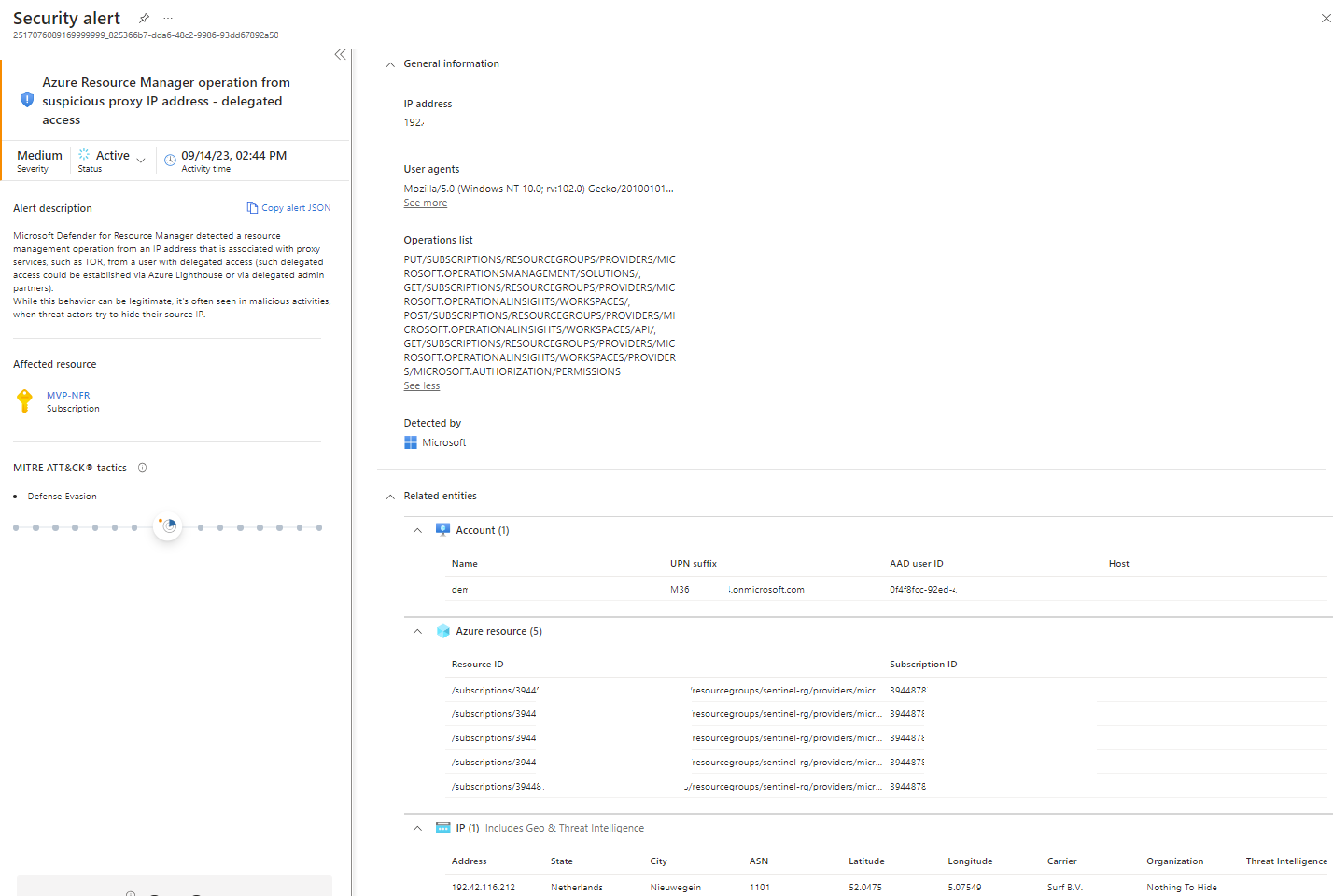 Even though it has been possible to detect MSP/MSSP activities, the detection mechanism requires often custom use cases and rules. A great addition to the detection part is the ‘Microsoft Defender for Cloud’ enhanced capabilities for the threat protection layer (Defender plans). This enhanced detection capability correlates events collected through Azure Resource Manager (ARM) and can identify possible suspicious activities coming from the MSP/MSSP side. We are talking about operations through delegated access. These activities are differentiated from member users’ activities.