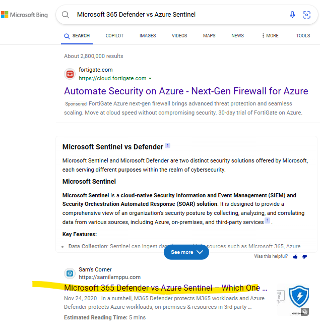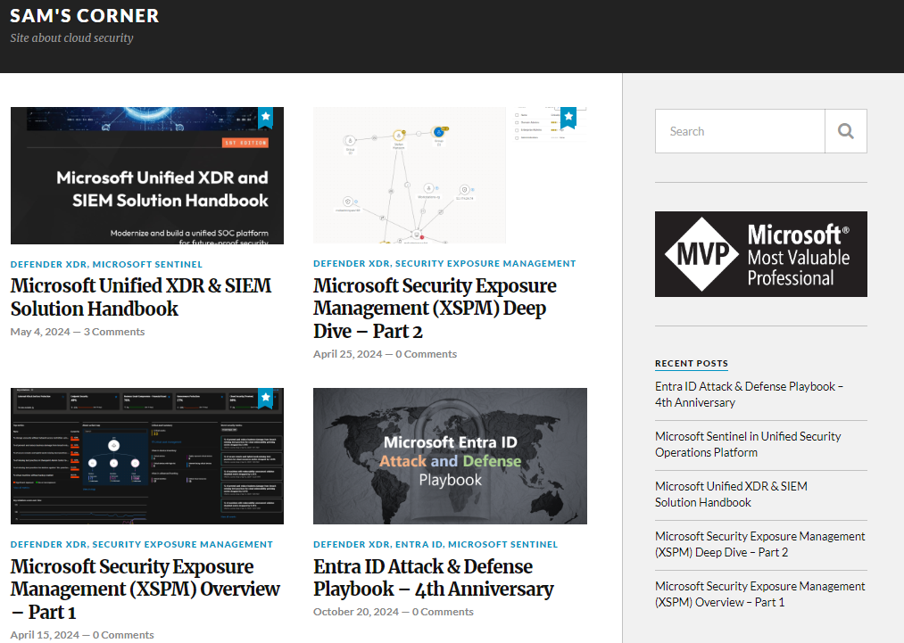 - Microsoft 365 Defender vs Azure Sentinel – Which one to use? – published November 24, 2020.